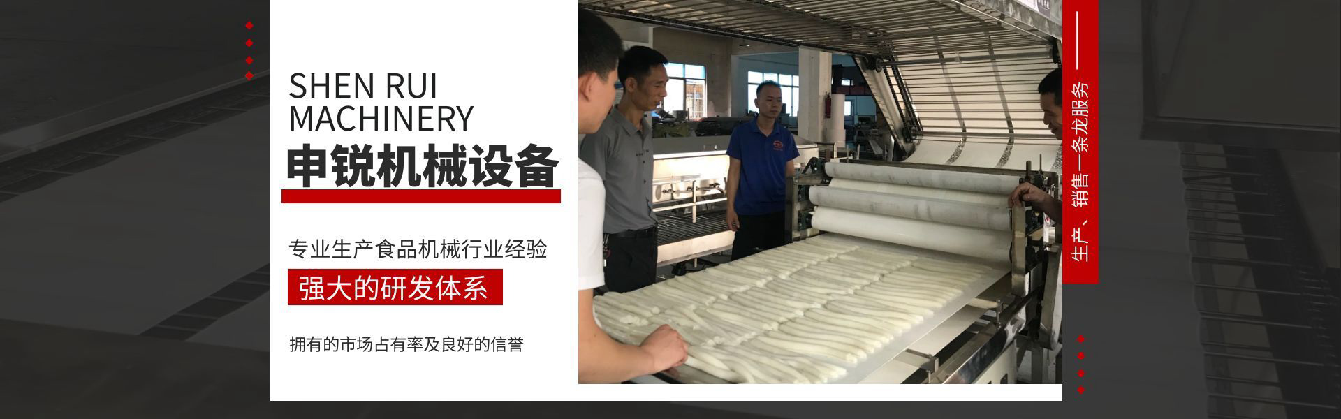 國(guó)內(nèi)首家專業(yè)生產(chǎn)河粉機(jī)企業(yè),廣州申銳河粉機(jī)行業(yè)標(biāo)準(zhǔn)制定者。